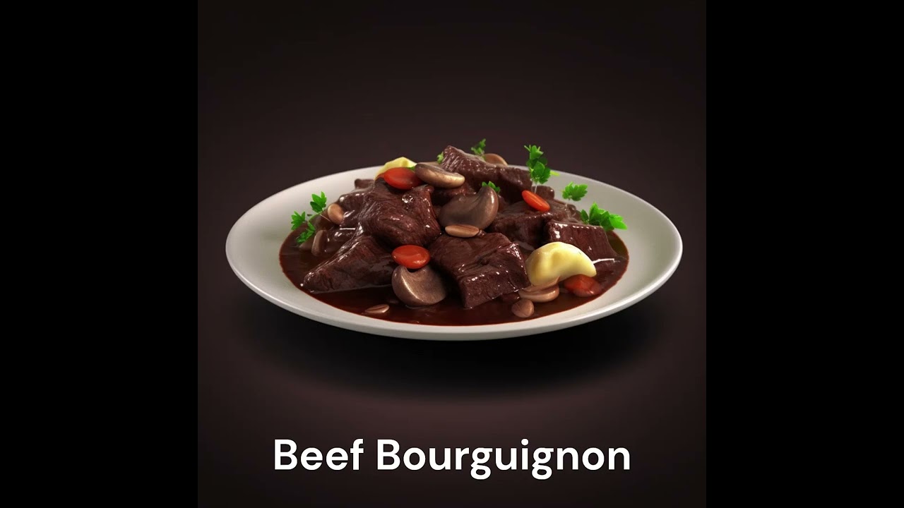 Beef Bourguignon – It is a slow-cooked beef stew that originates from the Burgundy region of France. The beef is marinated in red wine and then cooked with bacon, onions, carrots, and mushrooms. The result is a tender and flavorful dish that is perfect for a cold winter night.