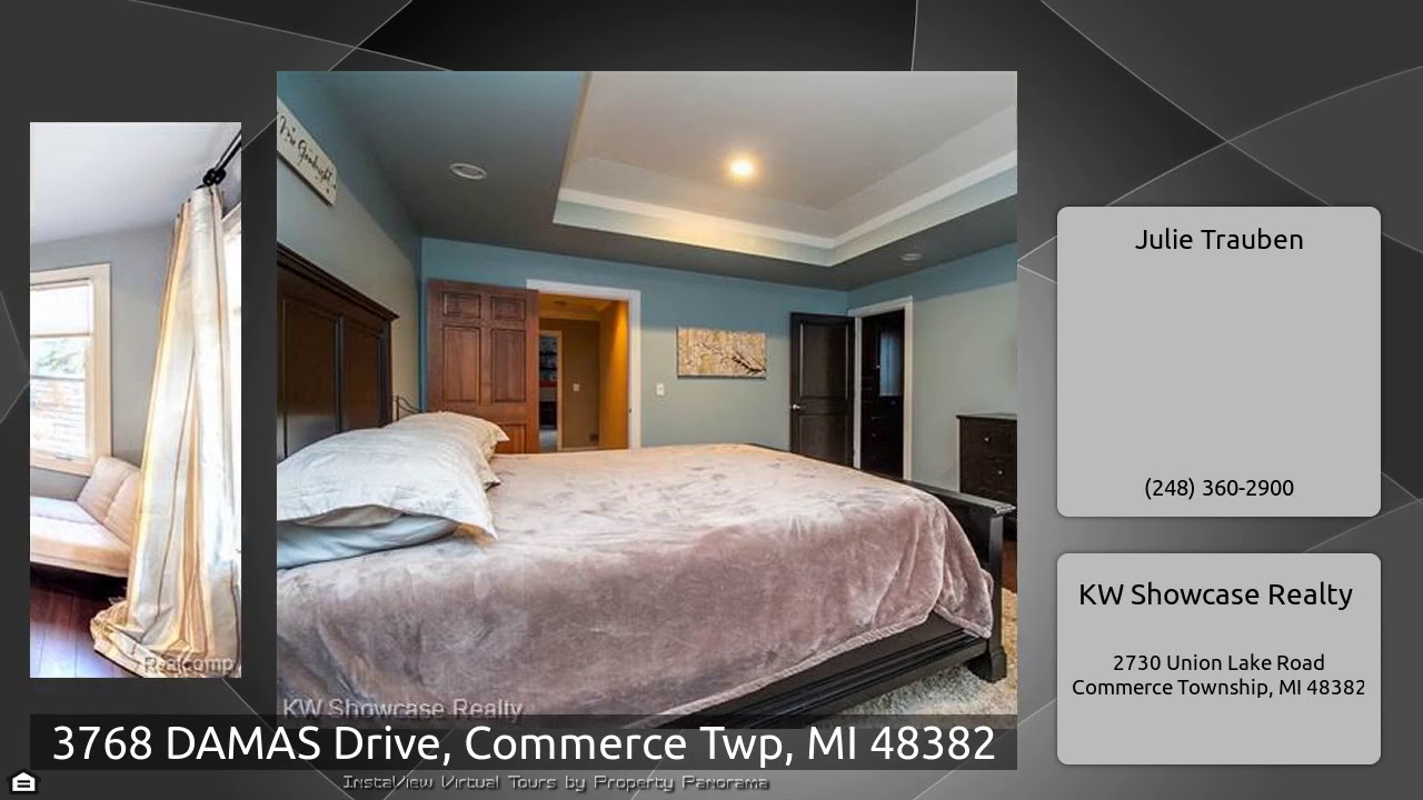 The Virtual Tour for the property at 3768 DAMAS Drive, Commerce Twp, MI 48382 listed for $638,800: Other homes for sale by Julie Trauben of KW Showcase Realty: TERRIFIC OPPORTUNITY TO OWN THIS AMAZING SHOWCASE CUSTOM BUILT 4200 sq ft luxurious home, with private beach only a few houses down & sub tennis court. Home detailed with grand custom crowns throughout, Pella Windows (Hunter Douglas Treatments) Grand foyer with magnificent entry French Doors to Study, spacious dining room with Coffered ceiling. Striking cathedral Great Room with magnificent windows and fireplace, gourmet …