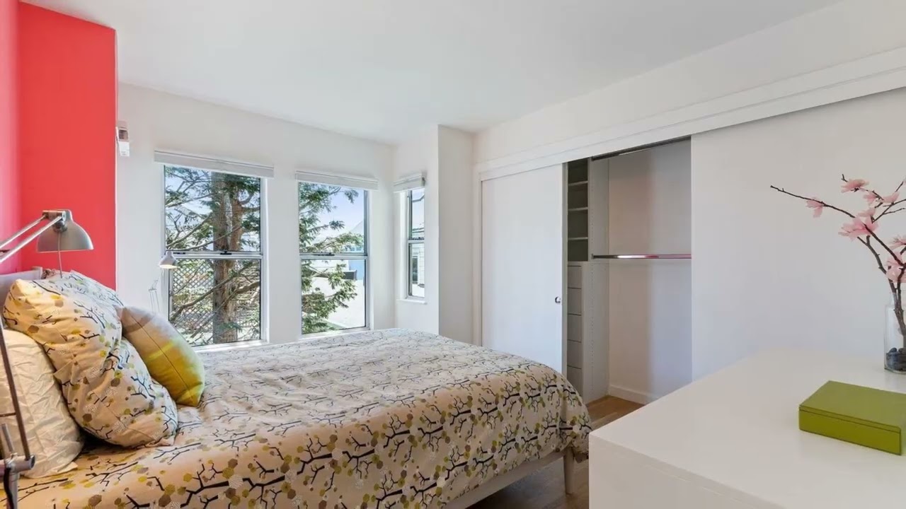 Colorful Living in the heart of Hayes Valley and Duboce Park. Amazing rear-unit 3-level townhome brimming with natural light on a quiet, desirable street. This modern townhome is full of color and reflects the owner, a noted designer known for her playful approach to her work. The main level with concrete-look tiles is an open floor plan with 16-foot ceilings and 12-foot-tall windows, bringing in an abundance of natural light to the kitchen, living room and dining room. The Scandinavian modern kitchen is highlighted by blue, fireclay tiles, minimalist, white cabinets, and high-end appliances, making it a chef’s delight. Through the French doors off the kitchen/dining area you’ll find the private garden, adorned with mature landscaping. The top level features both bedrooms as well as a full bathroom with a rooftop skylight and in-unit washer and dryer. The loft-style mezzanine on the middle floor has a bonus den/office space and looks down into the main level and garden space. With a 99 Walk Score, 96 Transit Score and 95 Bike Score, 61 Germania offers best of both worlds- your own slice of quiet, indoor/outdoor at home and all of San Francisco at your fingertips right outside of it.