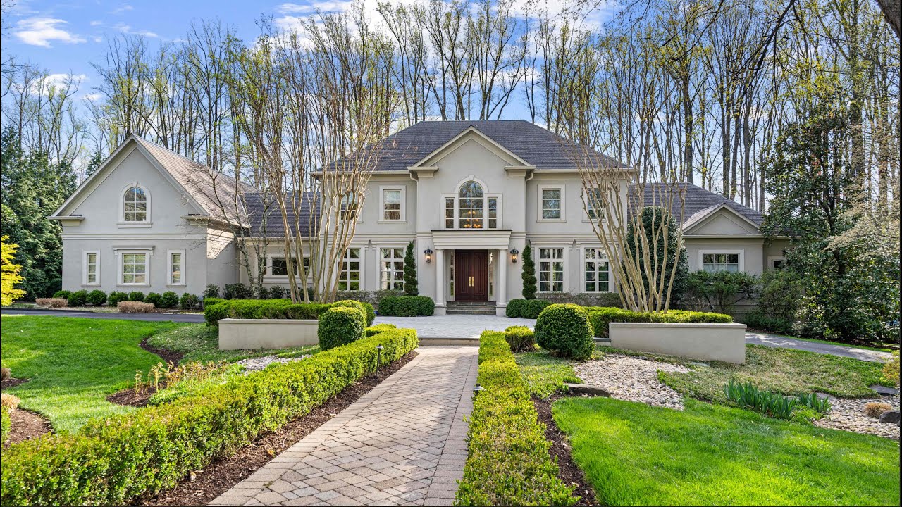Nestled in a secluded location on McLean’s distinguished Alvord Street, this exquisite French Provincial is accentuated by a symmetrical Charles Owen landscape, revitalized pavers, and freshly painted stucco. Upon entering, breathtaking illumination from the grand Palladian window bathes the marble foyer, unveiling an elegant staircase that ascends to an upper-level mezzanine overlooking the double-height expanse. At the epicenter of the home lies the regal central living room, adorned with arched windows and French doors that open onto the rear terrace. A fireplace with an oversized mantle serves as the room’s focal point, accompanied by a resplendent crystal chandelier. The stately formal dining room, befitting a residence of this caliber, showcases intricate craftsmanship such as inlaid flooring, ornate crown molding, and designer fixtures. The gourmet kitchen features Clive Christian cabinetry, limestone flooring, and an array of high-end appliances by Wolf, Sub-Zero, and Miele. An adjoining mudroom is designed for functionality, replete with built-in cubbies, a family powder room, and access to the three-car garage. The main-level primary suite offers a serene sanctuary with its neutral, calming palette. The opulent marble ensuite bathroom boasts dual vanities, a separate soaking tub, and a walk-in shower, as well as dual custom closets featuring cedar and ventilation. An elegant, paneled gentleman’s library and an inviting family room adjacent to the breakfast nook complete the main level. Upstairs are three generously proportioned bedrooms, each with their ensuite baths, and a guest apartment above the garage with a full bath and separate entrance. The luminous, limestone-floored walkout lower level is perfect for entertaining, replete with a fully-equipped wet bar, a temperature-controlled wine room, and a state-of-the-art private cinema with a 110-inch projection screen.
