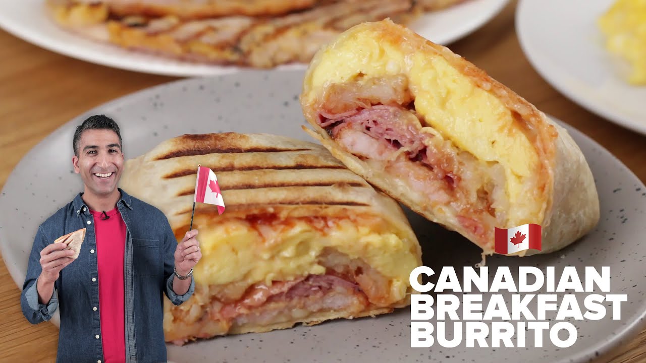 Peameal bacon, maple syrup, and PEI cheddar are just some of the Canadian ingredients we added to this delicious Canadian Breakfast Burrito. Get more recipes here: breakfastburritocanadianDempstersFranceFrenchFrench GourmetgourmetpromotedVideoVlogYouTube