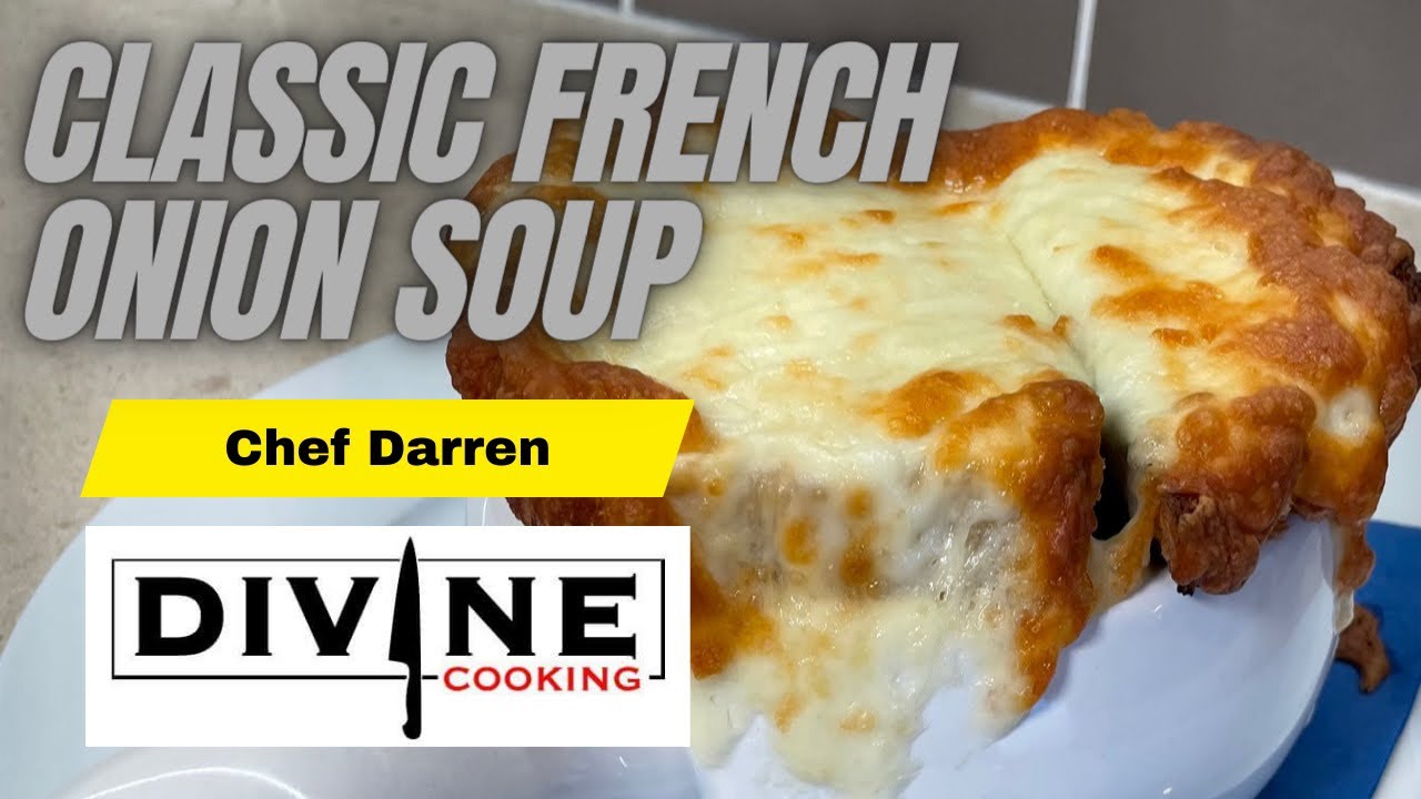 Peel and slice your onions. Place in a preheated heavy pot with oil and butter. Add a little kosher salt. Slowly cook your onions down, stirring often until they are soft and sweet. This slow process of caramelization is key to getting a nice rich soup. Deglaze the pot with your wine and gently scrape the bottom with a wooden spoon to remove the flavourful bits. Add your beef broth and thyme and bring to a gentle simmer. Continue to simmer for 20-30 minutes. Taste and adjust seasoning. Soup can be cooled and refrigerated until needed at this point.