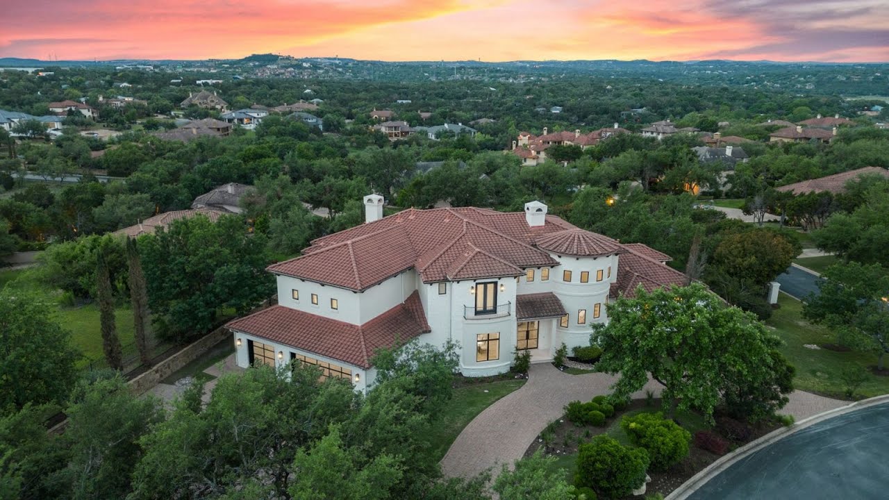 A spiral staircase with custom chandelier takes you to the second level which features 3 bedrooms, 3 full bathrooms, a game room, home theater room and multiple terrace-style balconies.