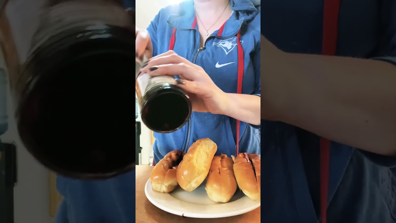 Jelly filled french toast 4 eggs 2 cups milk Pinch salt 2 Tbsp maple syrup 2 tsp vanilla 2 tsp cinnamon 1 tsp nutmeg 12 hot dog buns Jam Icing mixed with milk for pouring Butter for frying descriptionFilledFranceFrenchFrench recipesJellyRecipeToastVideoVlogYouTube