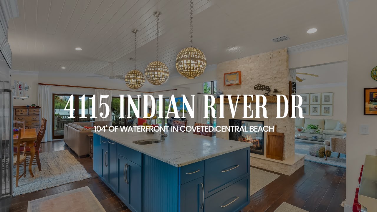 This sophisticated 3/3.5 residence with 104’ of waterfront on the Indian River Lagoon with a private dock, lift, and pool is in coveted Central Beach on the barrier island.