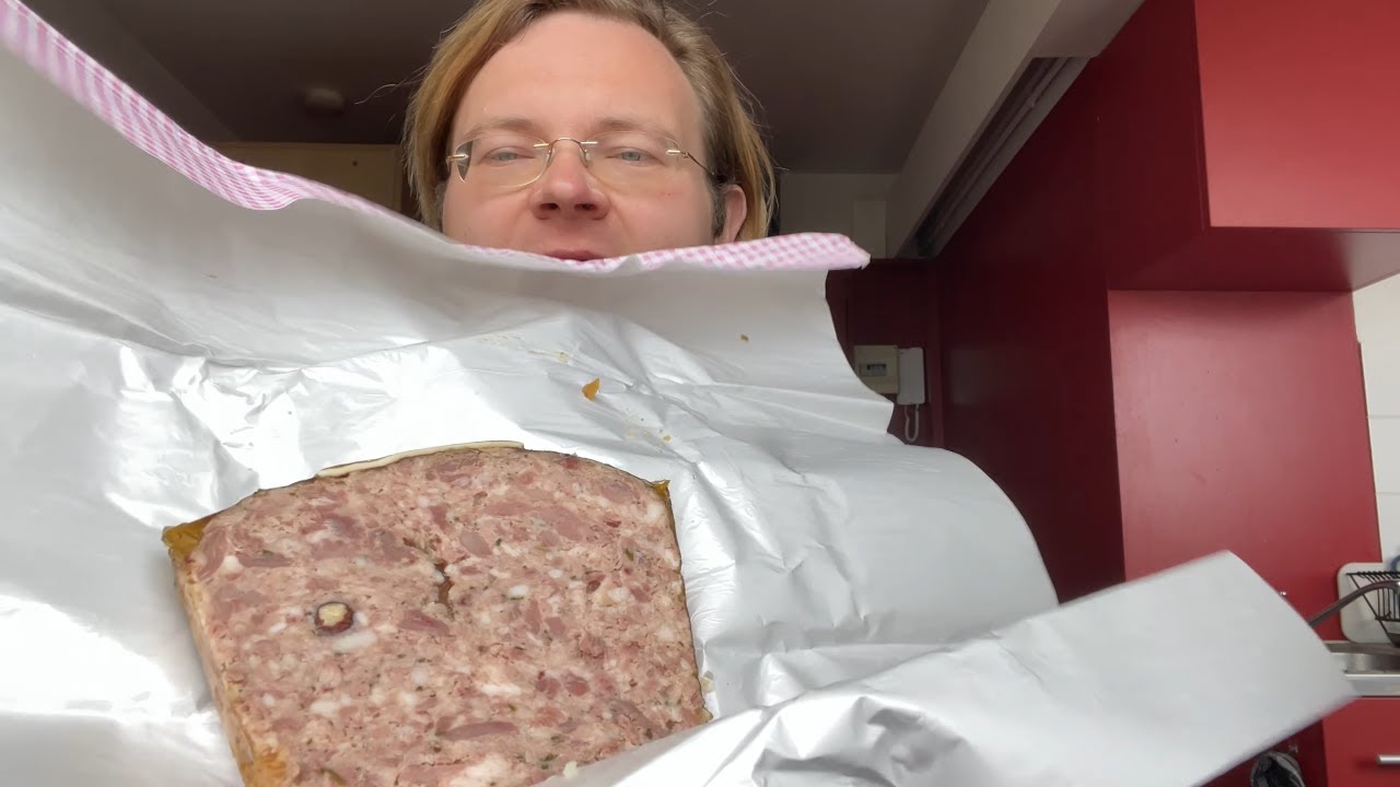 An American student in northern France presents to you the food here, now rabbit terrine with hazelnuts! If this content is of any interest, please subscribe, and I will share more.