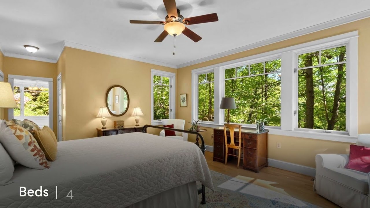 Upon entering, you are greeted by a statement stacked stone fireplace that sets the stage for custom touches aplenty. With custom-stained trim throughout, oak hardwood flooring, and pickled pine tongue and groove ceiling planks in the family room, this stunning property boasts 4 spacious bedrooms and 3 full bathrooms, including a window-filled, main level primary bedroom with a walk-in closet and a recently updated en-suite bathroom. Custom-designed insulated windows set the stage for views from every room. Enjoy the peaceful outdoor scene from the living room on the main level, which can be used as an in-home office when working remotely. The two-story family room and gourmet kitchen with island are flanked by gorgeous, pane-less windows and offer an open kitchen/living concept. With an eat-in kitchen area and a separate dining room, there is no shortage of space to entertain over the holidays. Gather around the stunning, floor-to-ceiling fireplace in the family room for a cozy, fall night in or step out onto the rear deck to relax and listen to nature. Finally, the oversized laundry room on the main level doubles as a mudroom with a built-in coat area, storage closet, laundry tub, and cabinets. A full bathroom adds to the main-level convenience.