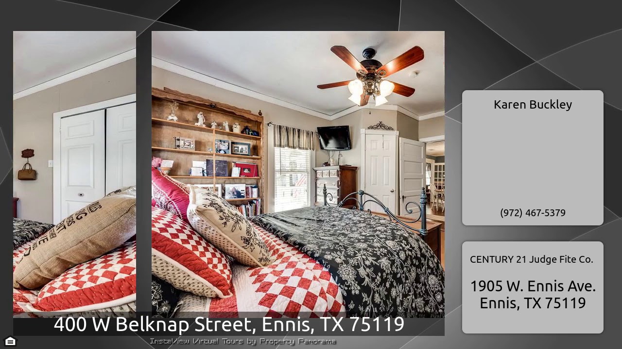 The Virtual Tour for the property at 400 W Belknap Street, Ennis, TX 75119 listed for $145,000: Other homes for sale by Karen Buckley of CENTURY 21 Judge Fite Co.: Adorable Historic Home close to downtown Ennis. 3 bed, hall bathroom has a jetted tub and the master bath has a shower that will need to be repaired. Large living room with french doors leading to the dining room. Open kitchen with a gas range and breakfast bar. Separate utility room that can have a stackable washer and dryer but at this time the seller has a full size washer in the utility room and the dryer in one of the …