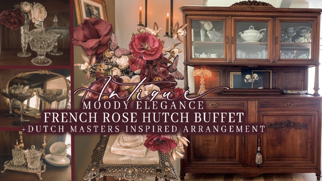 In today’s video, I will share the creative step-by-step process of restoring and bringing back to life this beautiful antique French hutch buffet, with lovely carved flourishes details, its original hardware, and beveled glass and designing an inspired Moody Elegance Dutch Masters-floral design with artificial florals, and much more. I missed you all very much! Thank you for joining me once more. I hope you enjoy today’s video♥️