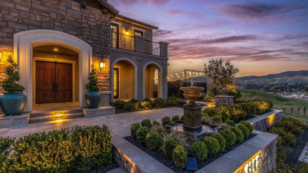Masterfully designed & crafted Toll Brothers’ estate home built late 2019 in exclusive Iron Oak community of Alamo Creek. Nearly $1 million in upgrades + $1 million+/- in add’l amenities. 6112+/- SF on .37 acres borders open space on 2 sides. Sweeping 270-degree views. Breathtaking architectural design. 19-foot ceilings. Extensive porcelain tile flrs w/look of wood & durability of tile. Wifi-controlled Lutron lighting. 6 temp zones. 15 KWh owned solar system, 3 Tesla powerwalls. Grand dual sweeping staircases. Multiple French drs, balconies, walls of windows open to outdrs. Formal living rm. Great rm w/gas linear frpl. Gourmet kitchen. Quartzite slab island, counters, blsplsh. Wolf, Subzero, Asko appls. Custom upgraded cabinetry. SubZero dual-zoned 300+/-bottle wine frig. 5 en suite bds. 5.5 bths. inclds main-level guest suite. Sumptuous primary suite w/ large pvt balcony. Marble-finished en suite, dual vanities, freestanding tub, walk-thru glass-enclosed shwr. Expansive bonus rm. 4-car garage. Resort-inspired bkyd. Travertine frt, bk & ctyd patios, paver driveway. 50-ft saltwtr pool. spa. 2 frpits. Bocce ball ct. Pizza oven, bbq, frig, granite counter. Gardens. Fountain. 3 tankless wtr heaters. Near 275 acres of preserved open sp, top-rated SRVUSD schls, Blackhawk Plaza.