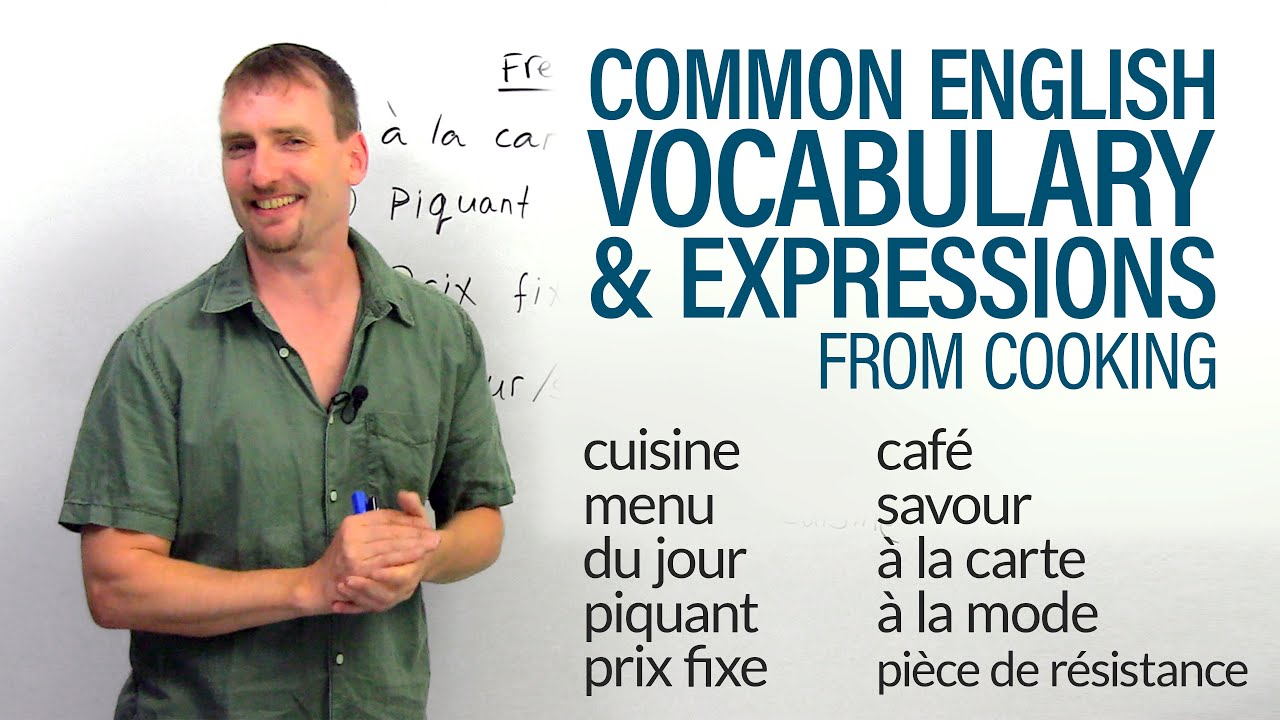 Hi. Welcome to www.engvid.com. I’m Adam. In today’s video, I want to look at ten words and expressions from the French culinary world. Okay? These are French culinary words; means they’re talking about cooking, and eating, etc. But the reason that I chose these ten is because they are very commonly used in everyday English, and not only to talk about food; they have very different contexts… excuse me. Very different contexts as well.