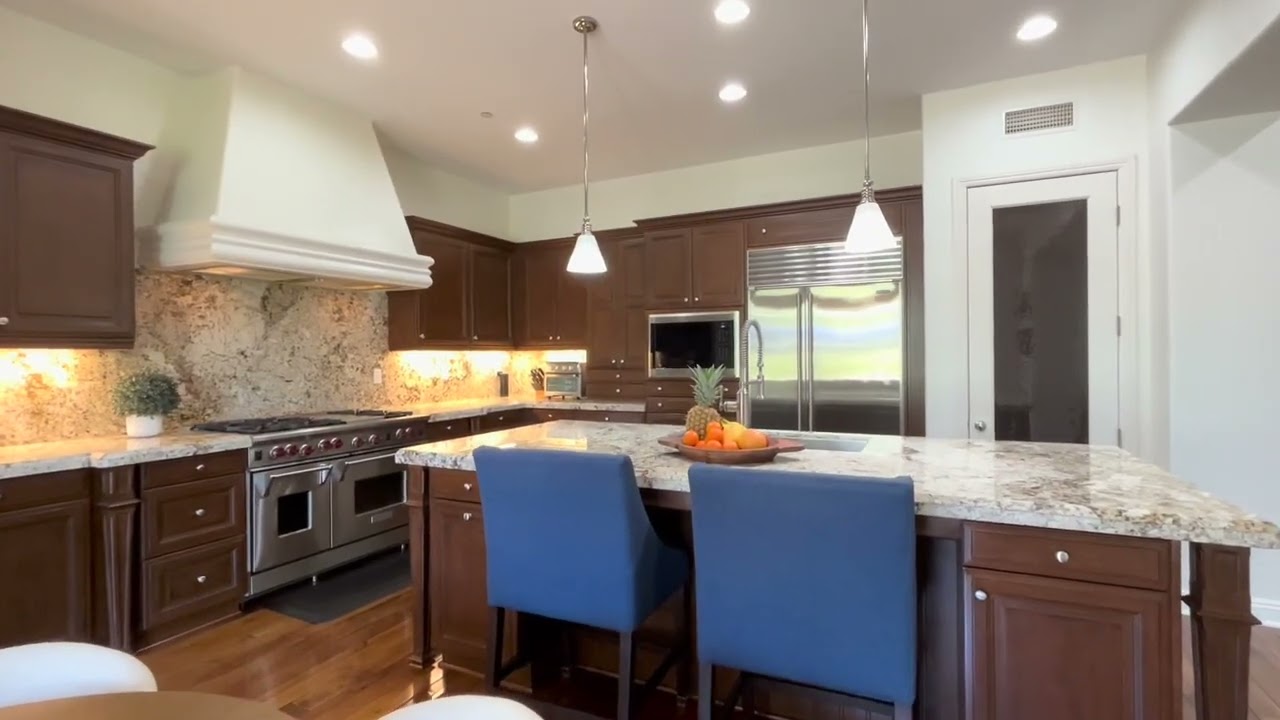 Move up to a refreshing and refined lifestyle at this extra-spacious Ladera Ranch residence in the southern end of guard-gated Covenant Hills. Handsome architecture, professional hardscaping and mature landscaping distinguish the highly upgraded home, which measures approx. 4,186 s.f. and features 4 ensuite bedrooms, office, library ( possible 5th Bed ) & 4.5 baths, with one suite located on the first floor. Numerous French doors create an indoor/outdoor ambiance, w/ a formal living room with fireplace and high ceiling opening to the covered front porch, & the formal dining room offering access to a side courtyard. The family room opens to the outdoors as well and boasts a built-in entertainment center w/ surround sound and an elegant fireplace. From mealtime to party time, the home’s designer kitchen is the place to be thanks to a nook that opens to a backyard loggia, an oversized island with breakfast bar w/ new stainless oversized sink, granite countertops w/ full backsplash, ample dark wood cabinetry, & top appliances that include a Sub-Zero refrigerator, 2 dishwashers, a wine cooler and 6-burner Wolf cooktop. A den and bonus room w/ interior French doors provide endless possibilities, & the exquisite master suite reveals a sitting area, fireplace, walk-in closet, & an upgraded bath with marble finishes. An extended driveway gives way to a oversized 3 car garage complete with 220V, newer water heater, new whole-house water system and built-in cabinetry. Located on a cul-de-sac street, grounds span about 8,635 s.f. & display a pool-sized lawn & inspiring valley and city-light views. Covenant Hills renowned schools & features resort-caliber recreation.