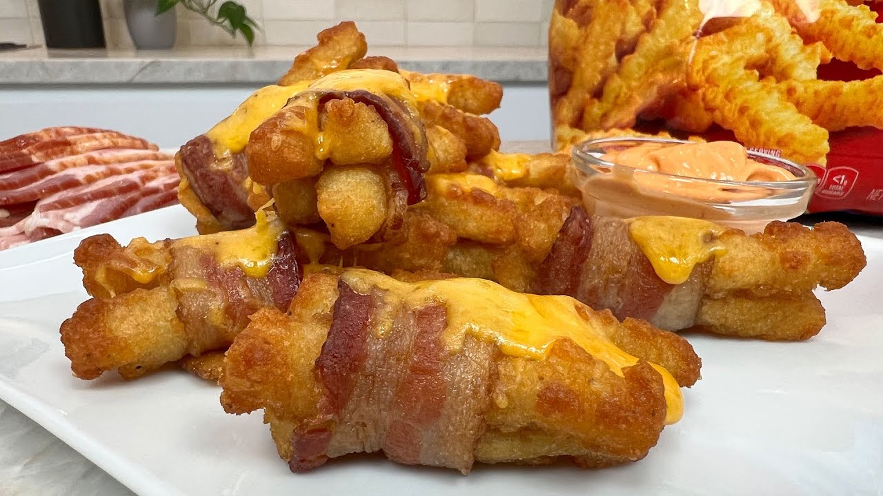 Bacon Wrapped Cheese FriesInstagram: Twitter: #definitelynotgourmet #bacon #cheese #fries Baconcheesedefinitely not gourmetfoodFranceFrenchFrench GourmetfriesFUNgourmetVideoVlogWrappedYouTube