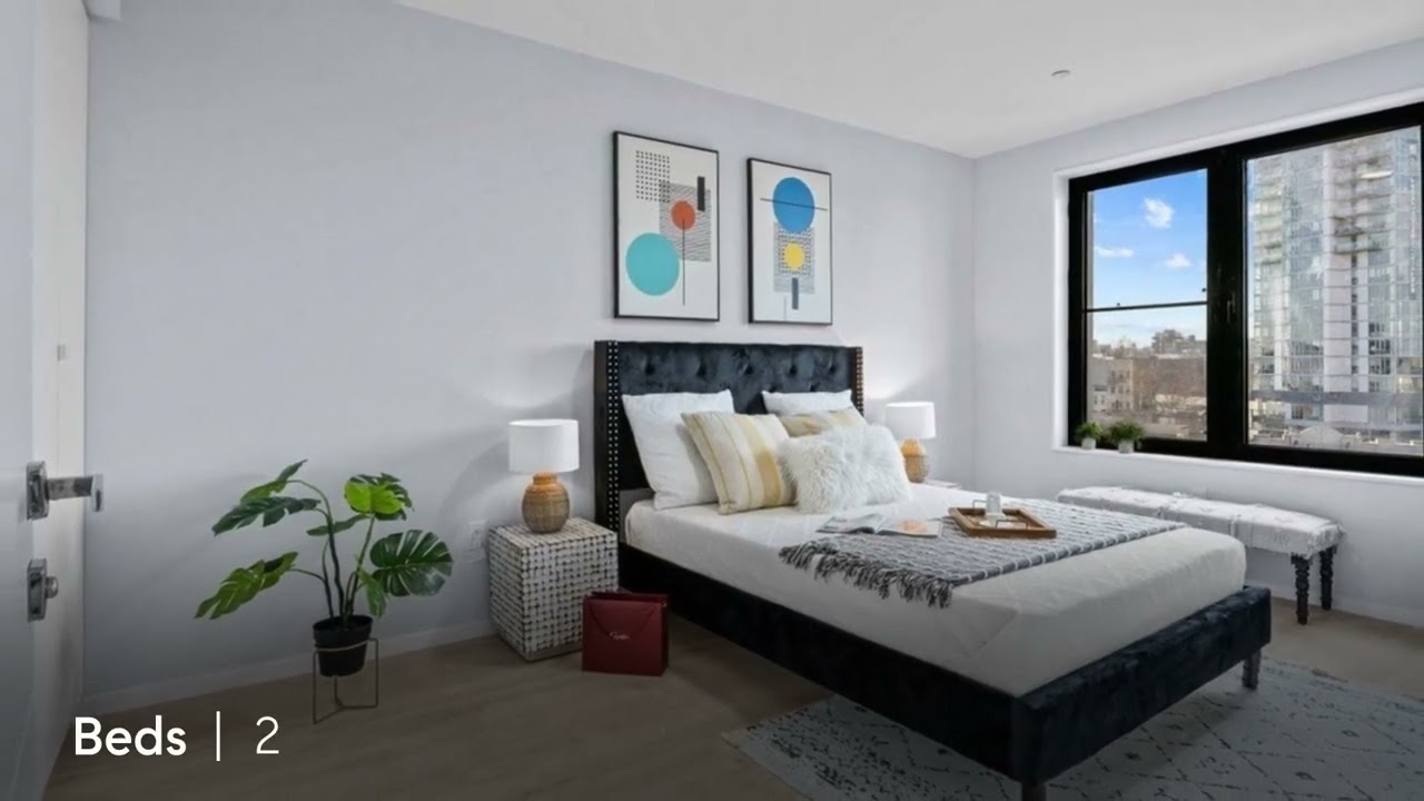 Inside this sun-splashed home, discover tall ceilings with recessed lighting, oversized windows and sliding glass doors. The large open-plan living/dining room opens to a wide balcony, perfect for indoor-outdoor enjoyment. Fall in love with the open gourmet kitchen finished with sleek gray and white cabinetry, quartz counters and stainless-steel Samsung appliances, including an electric range, French door refrigerator, dishwasher and built-in microwave.