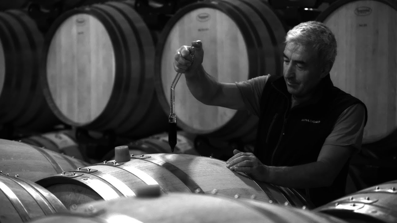 Lunadoro’s Pagliareto vineyard is situated on the crest of a hill. September winds dry the grapes from the night’s dew and make it possible, when October has begun, to harvest when perfect phenolic ripeness is reached. Something, this, that gives the wine a distinct tannic sweetness and extraordinary longevity. The harvest is carried out in a strictly manual manner, followed by the selection of berries and then vinification in temperature-controlled tanks with gentle pumping over. In December, the wine is transferred to 12 French oak tonneaux, each with distinctive characteristics, thanks to which 12 wines with unique nuances will be obtained. After 30 months have passed, a sampling is prepared for each tonneaux for the customer (12 samples of 60ml for each kit), who can choose the wine from the tonneaux he or she prefers, becoming its exclusive owner.