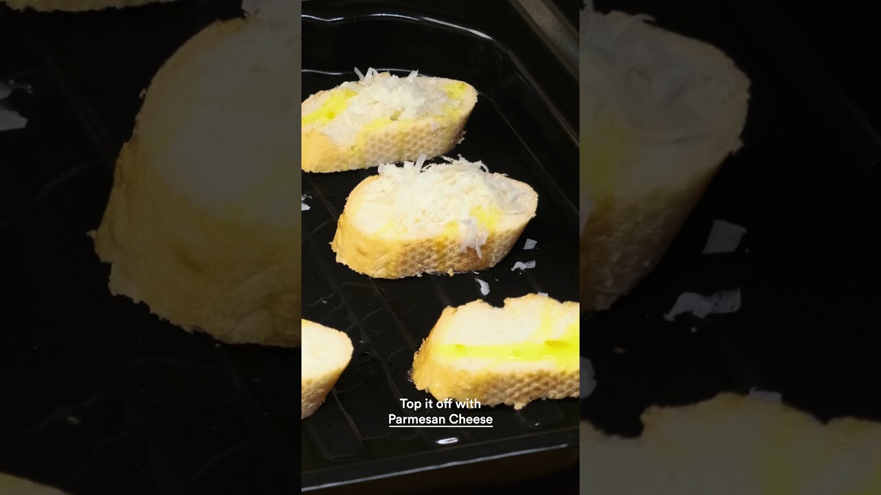 1. Preheat your oven to 180 degrees for 10 minutes and slice the baguette. Drizzle with olive oil, add the cheese and toast the baguette for 15 minutes.