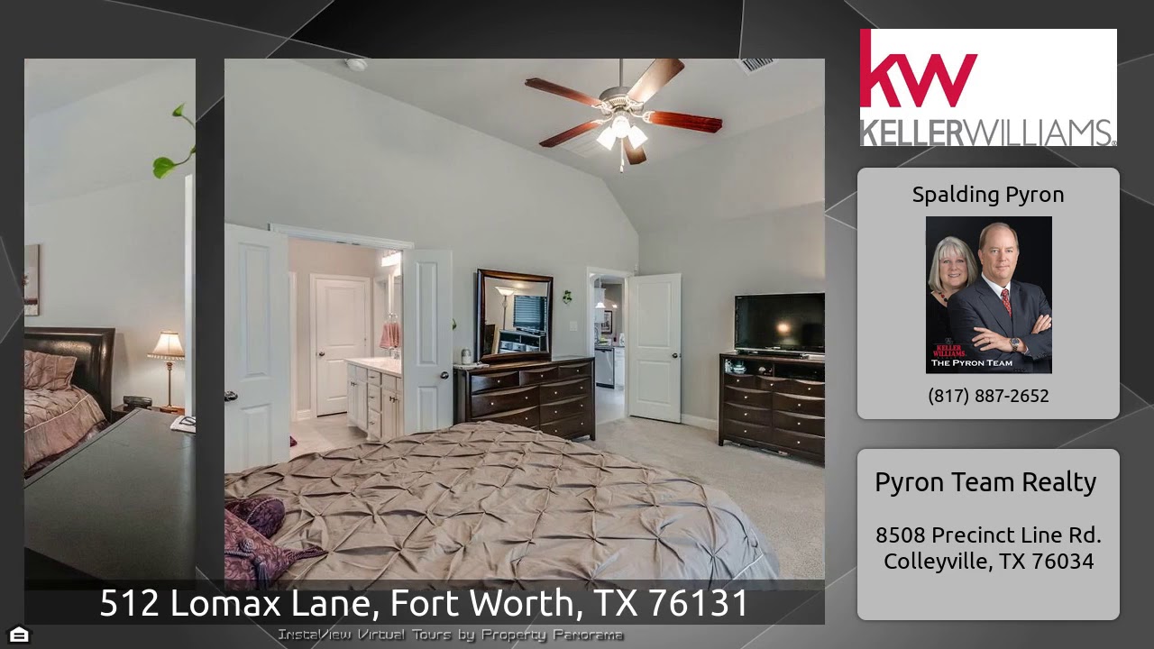 The Virtual Tour for the property at 512 Lomax Lane, Fort Worth, TX 76131 listed for $399,990: Other homes for sale by Spalding Pyron of Pyron Team Realty: This gorgeous American Legend Home shows like a model and is move-in ready! Featuring an open concept with 4 spacious bedrooms, 3.5 baths, study with french doors, open formal dining, inviting family room with fireplace, wonderful granite and stainless kitchen with eat-at island, cozy breakfast nook, private master suite down with sitting area, garden tub and separate shower, mother-in-law suite down, two bedrooms up, large gameroom and …