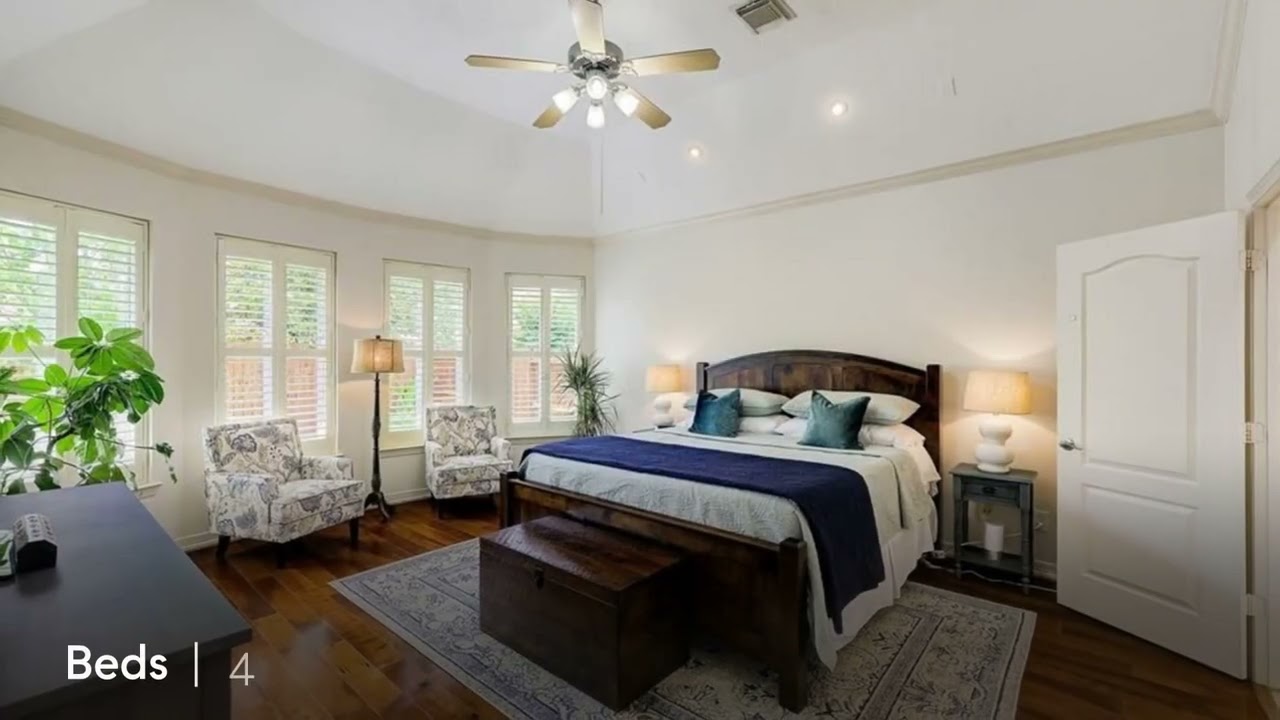 Well-maintained single-story in desirable Lakes on Eldridge North. Open concept plan w/ freshly painted walls, plantation shutters, wood flooring in the study, dining, and bedrooms. Private Study w/French doors, Formal Dining w/millwork detail. Island Kitchen, stainless appliances & spacious breakfast area w/built-ins & skylight. Large windows along the back of the living room provide a picture-perfect view of the backyard. Light-filled Primary Retreat w/sitting area, Ensuite w/dual vanities, jetted tub & separate shower. Spacious secondary bedrooms w/ vaulted ceilings. Outside is an easy to maintain yard w/covered patio, additional wood deck, lush landscaping & updated fence. Recent AC, furnace, and Roof. Enjoy resort-like living in this amenity-rich gated community w/ buses available to Awty, BISH, & Village schools.