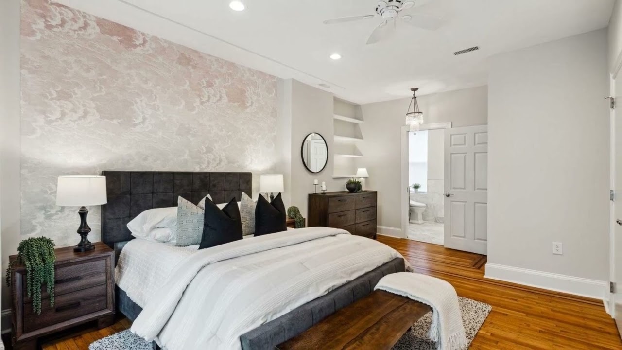 This stunning and recently updated townhome, located between Rittenhouse Square and Fitler’s Square, features high-quality upgrades, custom and original details, two outdoor spaces and coveted off-street parking. Enter the classic brick- front façade through the original wooden door featuring an arched glass window and intricate metalwork. Once inside notice the whimsical vestibule wallpaper, slate gray tile flooring and the 15-panel glass interior door. The expansive living room features 10 ft high ceilings, hardwood flooring with inlaid border, abundant recessed lighting, and oversized north facing windows. The gorgeous wood floors continue to the formal dining room which features an antique wooden door with functioning leaded glass windows, wood side panels as well as a leaded glass mini skylight above. A pointed archway connects to the recently renovated and tastefully designed gourmet kitchen with a mixture of natural wood, navy and beige shaker-style cabinets complete with stone countertops, subway tile backsplash and under cabinet lighting. The stainless-steel appliances include a Thermador range with chimney hood & dishwasher, microwave drawer, and counter-depth French door refrigerator. There’s a sweet built-in banquette at the back of the kitchen which offers views to your very own brick-paved patio and separate parking space with electronic gate. This level also features a convenient powder room, tons of pantry/storage space and a coat closet. Follow the custom designed railing to the second floor where you’ll find the luxurious primary suite with a wall of closets, 3 oversized windows and a serene, spa-like bathroom featuring a walk-in marble shower with bench seat, frameless glass doors, rain showerhead and inlaid tile accents. The second bedroom on this level is perfect for a library or den and is complete with a wood burning fireplace and mantle, abundant built-in shelving for the bookworm and provides access to the 2nd outdoor space; a lovely and spacious composite deck for outdoor dining or morning coffee. This level also has a powder room with a laundry area featuring full-size stackable LG washer and dryer as well as additional space for folding and/or storage. The third level of this townhome has two more spacious bedrooms, each with plenty of closet space and fabulous natural sunlight. A den/ small bedroom is also located on this level and works perfectly as a home office. A full walk-in closet is also located off the hallway. The third floor full bathroom shines with gold fixtures, a brand new modern vanity and a shower/tub combination with 2×10 subway tiles in herringbone pattern. The basement is dry for storage and houses all mechanicals including one of the two HVAC systems (second system is on the 3rd floor). This well-maintained and recently updated townhome is in pristine condition and enjoys an ideal Center City location with a walk score of 98. It is conveniently located within walking distance to Rittenhouse Square, Fitler Square, the Schuylkill River Trail, CHOP, UPENN and local favorites include Ambrosia and Rosy’s Taco Bar. Last, but certainly not least, this home is located within (and only three blocks away) from the award-winning Albert M. Greenfield elementary school catchment.
