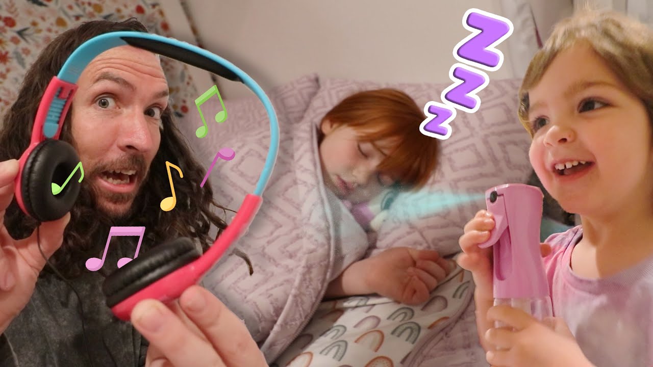 HEY EVERYBODY!! I had the craziest dream last night.. let me tell you about it! The vlog came over to our house to film an A for Adley video but when it got here everyone was still asleep! Dad woke up just in time and realized that we ALL slept in, he went and got Navey from her room, then they came to wake me up too! They were trying to shake me awake but I just won’t wakeup! They tired EVERYTHING to wake me up! First, they jumped on the bed and Navey even jumped on ME but I still wouldn’t wake up! Then dad tried putting Koopa on the bed to wake up with with dog breath and dog kisses but even that didn’t wake me up! Next, they got some headphones and play “Turkey Dance” at FULL VOLUME, they put them on my ears but I just started sleep dancing! Then Navey had a really good idea.. she ran into the bathroom and got the spray bottle and sprayed it all over my face! Dad really thought that would work but it didn’t! They decided to just do the Adley video while I was asleep but they would have to get me ready! They put me on a blanket and dragged me into the bathroom to brush my teeth and comb my hair! It was actually kind of nice, it was like a relaxing spa makeover in my sleep. Navey was in charge of brushing my teeth, but she grabbed the wrong toothbrush and almost used Niko’s toothbrush on me! GROSS!! Then they put me back on the blanket and dragged me down the stairs to the kitchen to get some breakfast, they even got my favorite cereal froop froops! Remember, that was the cereal that I wanted when dad turned me into a baby in the “Adley turns into a baby” cartoon! After they gave me food, they tried one more thing to wake me up! They got a cup full of ice and poured it down my shirt. It was SO cold but I still didn’t wake up, so they tried ONE more thing! They carried me outside and put me on the trampoline covered in snow to bounce me around! Finally I woke up, but I wasn’t on the trampoline! I was just on my bed, that whole thing must have been a dream, but that did make me want to watch some more “Won’t wake up” videos. So I got onto YouTube and found some of our old videos to watch like: