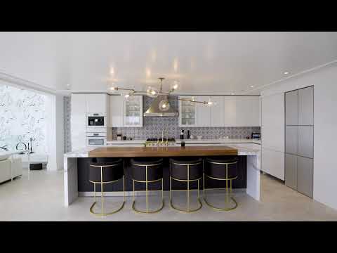 This three-story contemporary home is a collaboration of architectural design and global influence by Tiffani Baumgart, a local San Diego designer, who created an experience like no other. It’s all in the details, this bespoke home was carefully thought out with high-quality elements that took years to gather from around the globe. The achromatic color scheme offers cleanliness and simplicity, while striking patterns adorn each room. The relief of colors allow the important focal points to be accentuated, in this case the natural colors of the ocean and sunsets which shine through the floor to ceiling windows. Carefully layered into the design is the element of light, from the movement of the sun and soothing glow from the dimmable lights that are monitored with a Lutron system. This smart home is easily controlled with your smart phone to construct the mood before arriving home where you can situate the lights, blinds, heat and jacuzzi. The SieMatic kitchen cabinets have an innovative use of space with classic style, which were designed by Baumgart. The Calcutta marble waterfall island has an inset wood slab detail at the four-person breakfast bar and is complimented by the Lindsey Adelman light fixture, Miele and La Cornue appliances and Swedish tile backsplash that accentuate the space. The jewel of the dining nook is a pendant by Lindsey Adelman, and the star burst Hanley chandeliers in the two-story ceiling of the living room are a Arteriors design, which is also a focal point from the primary bedroom. This double lot has a vast outdoor living space with the multi-level decks and courtyard which allow a true indoor-outdoor experience from each living area once the Cover Glass windows slide open. The courtyard by the front of the home is a welcoming entry home with a custom crystal water feature and landscaping. The lower level features the sunken private hot tub and entertainment space with wet bar with French hammered tin ceiling and French antique door as the bar wainscoting. Complimenting this are the 33 owned solar panels, radiant heating for the home and radiant in-floor heat in the primary bathroom. Three blocks to iconic Carlsbad Village, which is the downtown commercial area of Carlsbad, and is a center for arts, culture, shopping and dining.