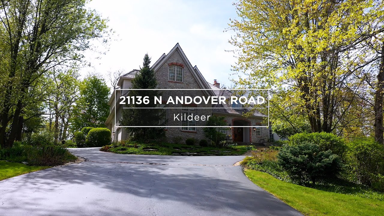 Welcome to 21136 N Andover Road. A stunning stone 2-story home, situated high on a hill in sought-after Farmington of Kildeer, this exquisite architectural masterpiece is designed to bring the outdoors in. Floor-to-ceiling windows abound. The front door opens to a stone, magnificent foyer and features a custom, hand made, hand cured, wrought iron staircase, a true work of art. This home has such versitality, with both formal living, as well as casual space for relaxation. The dining room is absolutely spectacular, with a magnificent chandelier, stone flooring and high ceilings; and the living room is a two-story beauty, with unobstructed views to the outdoor landscape. A lovely eat-in gourmet kitchen has been remodeled with high-end stainless appliances, white cabinetry and quartz countertops. An oversized island is perfect for serving, entertaining, and is open to the family room/hearth room. The see-thru fireplace is opposite a lovely sun room with a tremendous view featuring a fireplace where the surround is crafted from carefully selected antique tiles– and sets the tone for casual relaxation. Ease into your morning, or end your evening in the elegant first floor primary suite boasting a generous bedroom with dual walk-in closets, oversized windows and a luxurious bath overlooking the lush outdoor landscape, with a glass enclosed shower, separate whirlpool tub, a wet COFFEE BAR, with beverage refrigerator, and french doors leading to the blue stone patio. The second floor is home to three additional large bedrooms, each with its own bath. An office/den is also located on this level. The expansive basement has 10 foot ceilings of wide open space, with a one finished room that has above ground windows and natural light. It is home to mechanicals and storage, but could easily be finished for additional recreational or living space. Soaring ceilings, stone flooring, updated kitchen and baths, fantastic light fixtures, gorgeous fireplaces, professional, award-winning landscaping. This home has IT ALL! Truly a one of a kind beauty!