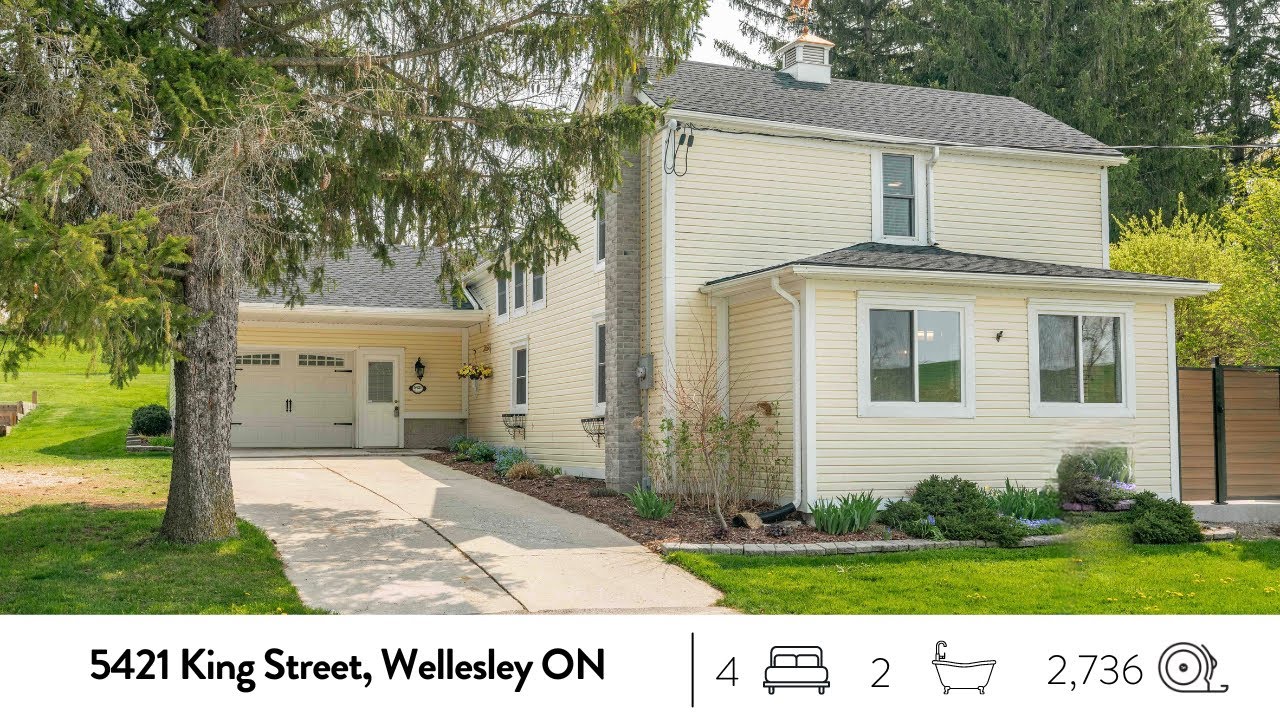 Conveniently located 20 minutes from Waterloo and 19 minutes from Stratford, this stunning and unique multi-split rural property boasts a spacious 2736sf. The original house was built in 1890, and a gorgeous addition was added later. The home features a gourmet kitchen with custom cabinetry, granite countertops, stainless steel appliances, and a large walk-in pantry. The open concept dining area has an abundance of natural light flowing in from the skylights in the vaulted ceiling and french doors leading out to the deck. There are 3 bedrooms in the original part of the house with an additional, large bedroom added in the new part. This allows for accessibility potential being directly beside the large main bath with heated floors, and the kitchen and laundry being all on one level. The front family room has beautiful original wood beams, certified wood burning fireplace and a handcrafted wooden bar, while the newer living room features an incredible stone fireplace and sliders to the peaceful pergola-covered backyard area. The primary suite has 3 windows, a skylight, large walk-through closet, 2-piece ensuite, and a character-filled wooden ceiling with beams. The home has been upgraded in 2022 with a new roof, vinyl flooring, light fixtures, and more. It sits on an over 1/2 acre lot, with a large covered composite deck and built-in hot tub, new concrete slab and privacy fence, perfect for entertaining. The property has a large garage/workshop and loads of parking, including an additional concrete slab which fits a trailer. The home faces the Nith River, with vacant land across the street offering privacy and incredible views. This home offers the perfect mix of character and modern conveniences for those looking to escape the city. Contact your Realtor today for a private showing!