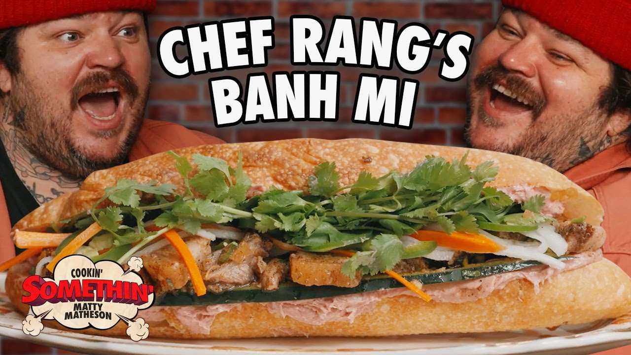 THE BEST SANDWICH OF ALL TIME SPECIAL BEAUTIFUL PORK BELLY BANH MI! VIBRANT JUICY MIXTURE OF TEXTURES AND FLAVOURS THANK YOU CHEF RANG THANK YOU VIETNAM FOR THE GREATEST THINGS IN THE WORLD