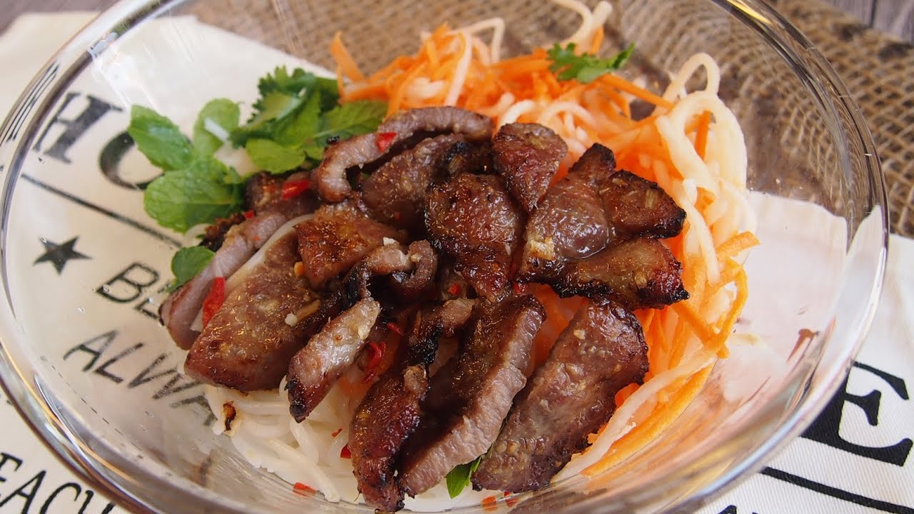 Bún thịt nướng is my favourite Vietnamese dish. FAVOURITE!!! It’s essentially rice noodles with grilled meat (any types of meat but always marinated with lemongrass) This noodle salad dish is eaten cold as with any salad.