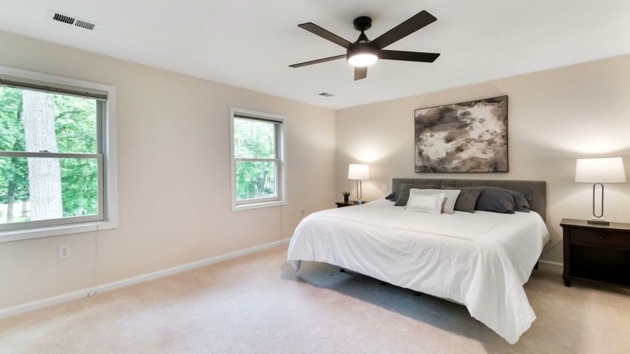 Fabulous North Reston colonial on a flat 1/3 of an acre treed lot. Remodeled and renovated from top to bottom. The gourmet chef’s kitchen was reconfigured and updated with custom cabinetry, an extended island with seating, pendant lights, granite countertops, double steam wall ovens, an induction cooktop, a dual zone wine refrigerator, and two sinks. Hand-scraped Brazilian teak wood flooring throughout the main. Fresh paint throughout, and new carpet on the upper level. Recessed lighting was added and new fans. Laundry room on the main level with new washer & dryer in 2019. The main level powder room, upper hall bath, and primary bath were all tastefully updated in 2019. Vinyl Siding 2018, Roof 2019, and HVAC 2021. Replaced Renewal by Anderson Windows throughout. In the Lower-level new bamboo flooring was installed, and surround sound speakers and a window well was added in 2022. Updated electrical panel and an additional sub-panel in the garage. French drains were installed around the house and a Trex deck was installed in 2019. With all these updates, move right in with peace of mind and enjoy this fabulous location so close to Lake Anne, North Point Shopping Center, Baron Cameron Park, Rt. 7, 267, Wiehle Ave metro, and Reston Town Center!