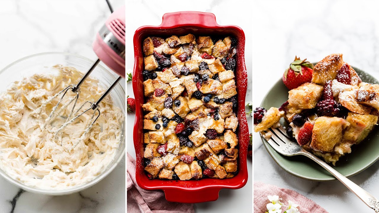 This mixed berries & cream cheese French toast casserole combines juicy berries, silky cream cheese, and challah bread all soaked with a rich brown-sugared egg custard. This impressive breakfast or brunch dish is altogether creamy, soft, crisp, and comforting, and the best part is that prep work is so EASY.