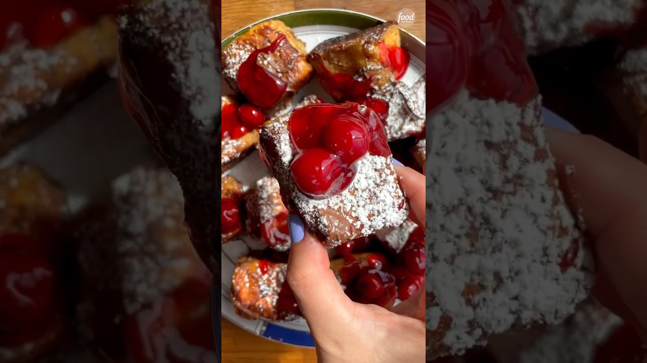Cherry and Nutella Stuffed Hawaiian Roll French Toast
