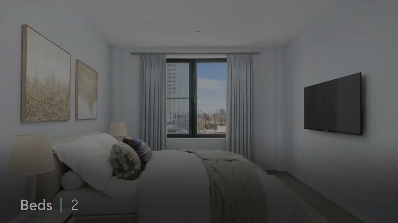 Inside this sun-splashed home, discover tall ceilings with recessed lighting, oversized windows and sliding glass doors. The large open-plan living/dining room opens to a wide balcony, perfect for indoor-outdoor enjoyment. Fall in love with the open gourmet kitchen finished with sleek gray and white cabinetry, quartz counters and stainless-steel Samsung appliances, including an electric range, French door refrigerator, dishwasher and built-in microwave.