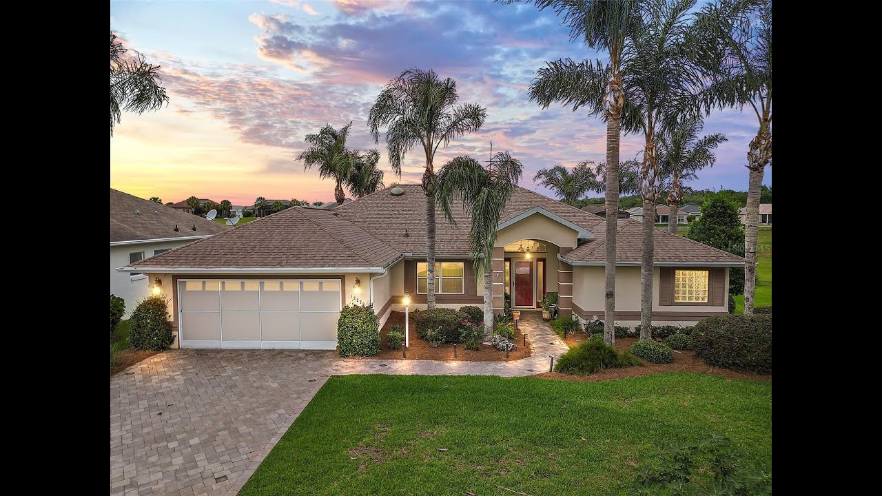 Stonecrest Gated 55+ Stunning PGA Golf Course and Water View: 3Bed/2Bath CONCRETE BLOCK HOME!!! Entering into this glorious home you will see a beautiful living room with crown molding and french doors. Then you see a Spectacular view of the golf course. You have a Dining separate from the living room. This gorgeous home has a split floor plan. Master Bedroom is spacious. Master bath looks like you entered a spa. His and Her built in closets. Crown molding in Master Bedroom. French door leading from Master bedroom to Lanai with phenomenal water and golf course view. Lanai is Oversized and has sliding windows, window treatment, title floors & French door, 2 ceiling fans. Kitchen features high ceilings, sky light, custom drawers, pantry, picture window, eat in Kitchen, 8 recessed lights, dining room or a family room you decide. Both guest rooms have built in closets and ceiling fans. One of the guest rooms over looks the golf course. 2 car garage has attic pull down stairs, screen door in front of garage, utility sink. Pavers on the driveway, off the lush green cul-de-sac. Extra Room for Laundry and an additional closet. Washer/Dryer Stainless Steel. Roof: May 5, 2020 A/C Oct. 15, 2020Enjoy any of Stonecrest 4 Pools, Fitness room, Dog park, Pickle ball courts, Baseball field, Tennis, Golf, Cheers Restaurant, Activities, Theater, Clubs and Clubhouse. Near The Villages, Doctors offices, Shopping, Restaurants and The Village Hospital This Will Not Last!!! Call me!!!