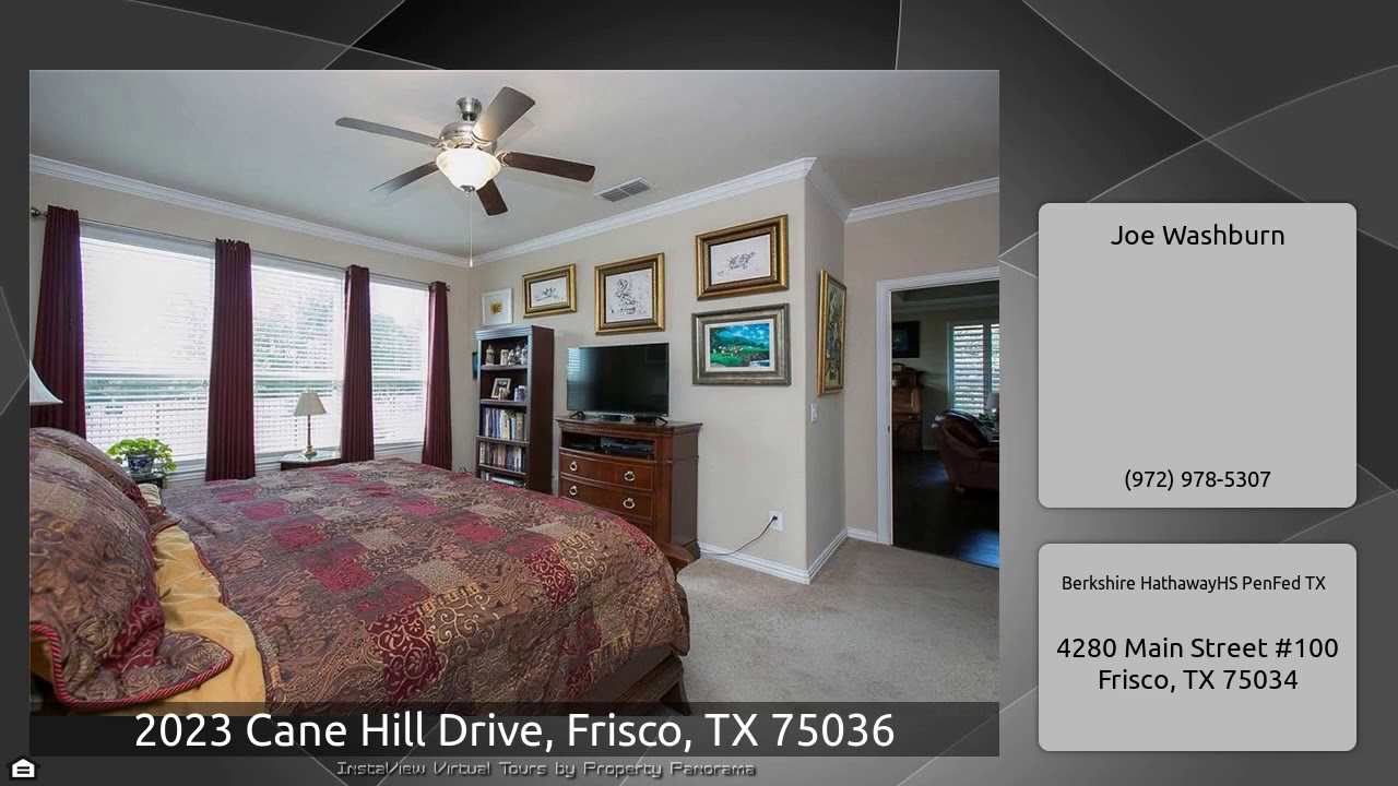 The Virtual Tour for the property at 2023 Cane Hill Drive, Frisco, TX 75036 listed for $381,900: Other homes for sale by Joe Washburn of Berkshire HathawayHS PenFed TX: What a view of golf course & #10 Fairway from your extended flagstone patio..Great drive-up on this well decorated, well cared for Surrey Crest..2 BR's+Study..Spacious kitchen w-granite, lots of 42in. cabinets, ss appliances, island work space w-bar stool area, plus large separate dining area..Lite & brite family rm w-wood floors, trey ceiling & a view adjoins study w-French doors..Master has wall of windows & also views …