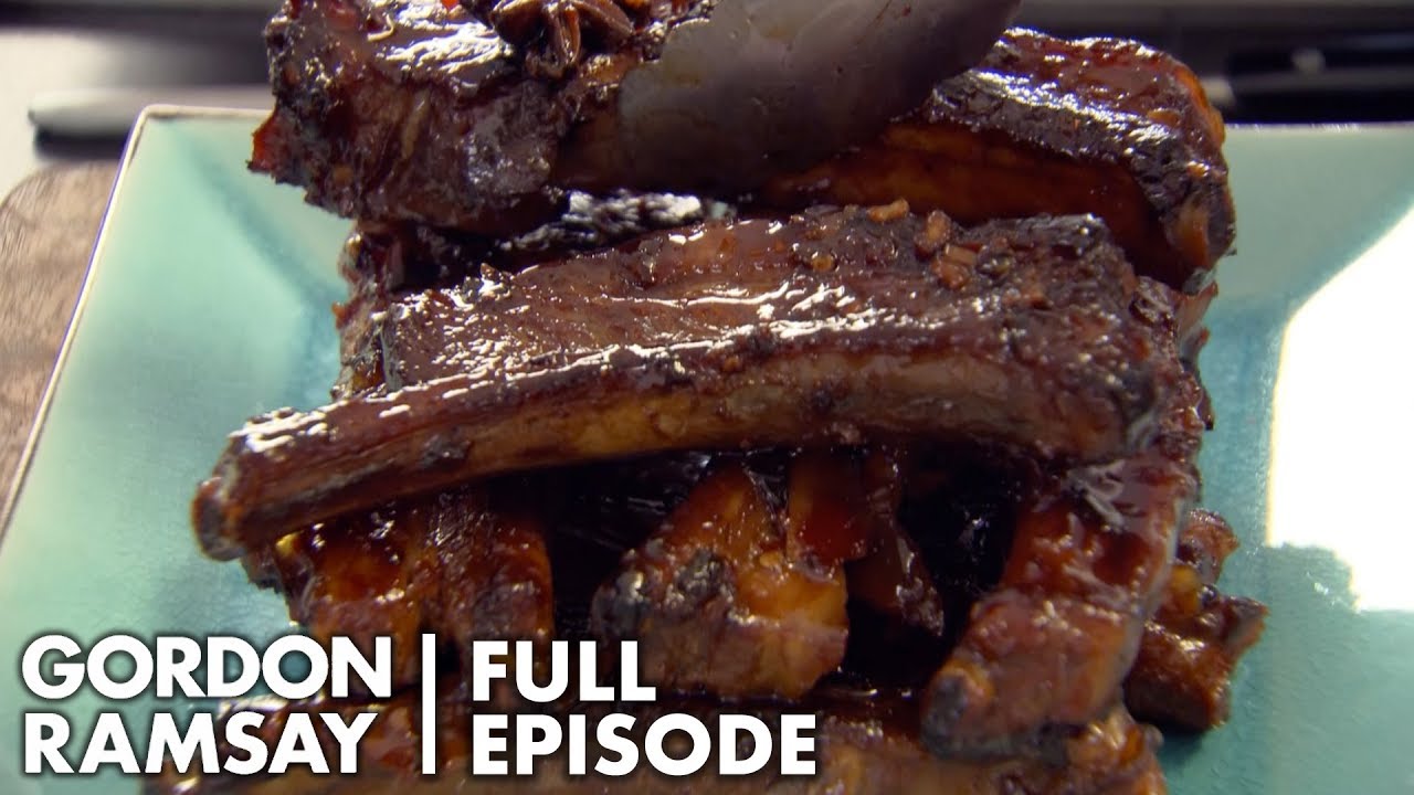 In this episode, Gordon Ramsay demonstrates his ultimate stress free recipes. From sticky pork ribs to spicy chutney.