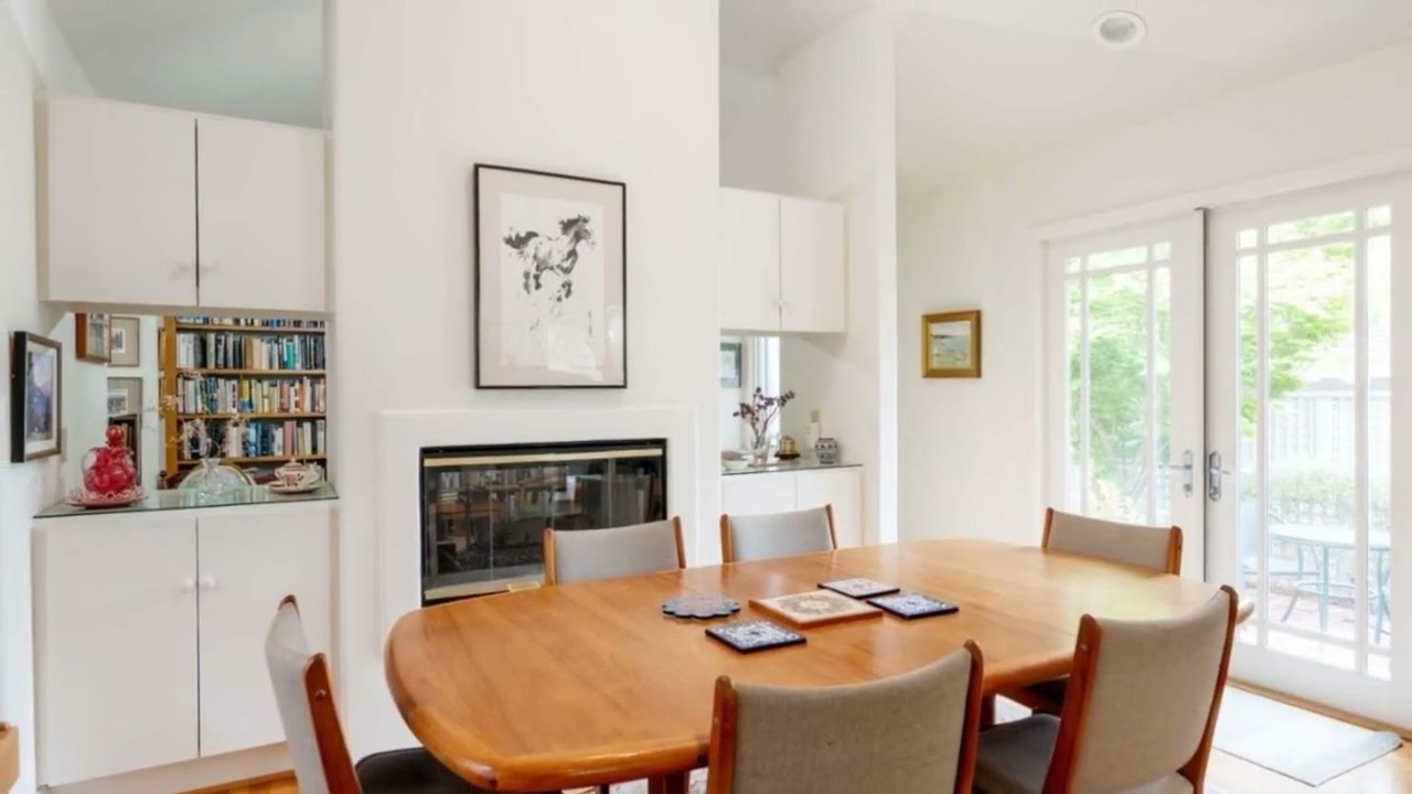 This custom home boasts a sophisticated and timeless design by renowned architect Alan Turpen. Interior features bullnose plaster walls, white oak floors, and easy-to-live floor plan. Living room is flooded with natural light & features a wood-burning fireplace that can be enjoyed from any angle. The kitchen, designed by Kitchen Studio, has custom Downsview cabinets, high-end appliances including a 2023 Miele dishwasher and Bosch refrigerator, and center island with its own sink. The dining area features a two-sided fireplace and French doors that lead to a beautiful brick patio. The library is a cozy space for reading or movie-watching by the fireplace. Bedrooms offer flexibility, one with a Swedish fold-down bed for added space. The primary bedroom features an ensuite bathroom and ample closet space. Exterior is stucco with cement tile roof and is surrounded by a sculptural oak tree in front. Utilities are underground, which is a rarity in Carmel. The property is located in a quiet location just a short distance from downtown Carmel over the 4th St foot bridge, with access to Carmel Beach.