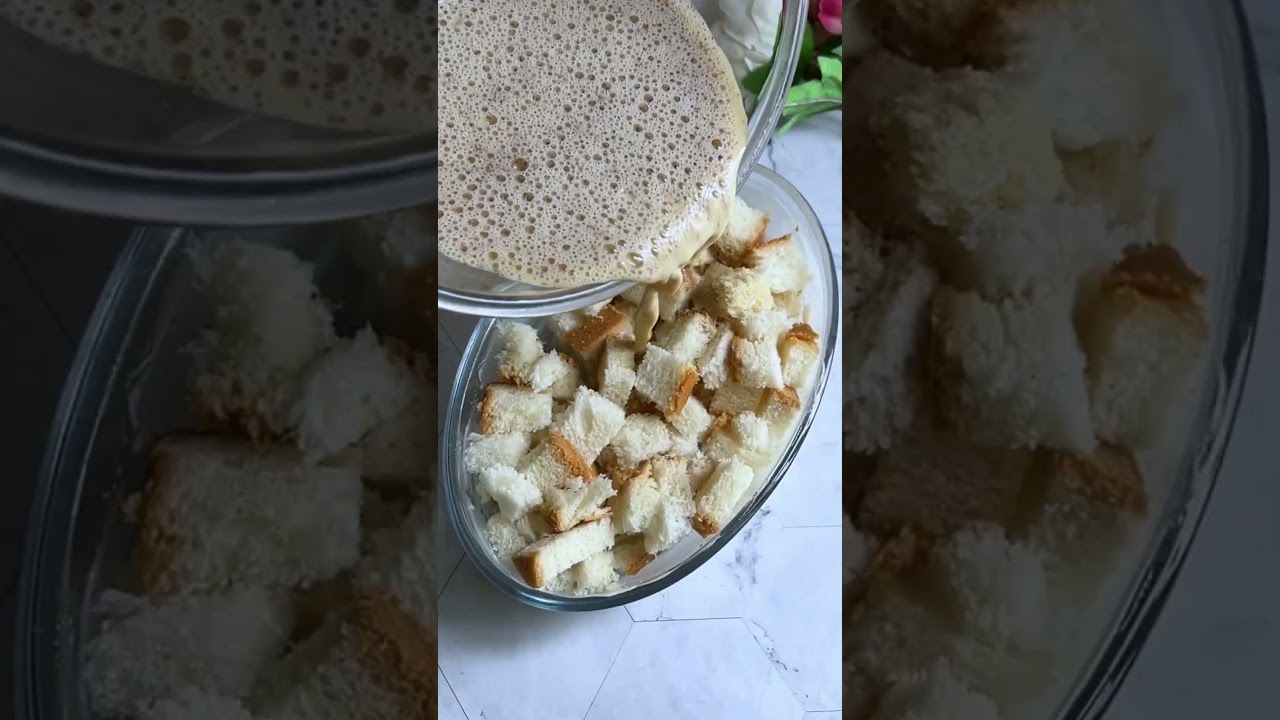 Pour The Milk Mixture on the bread cubes and Bake for 15-17 minutes at 259 Degrees
