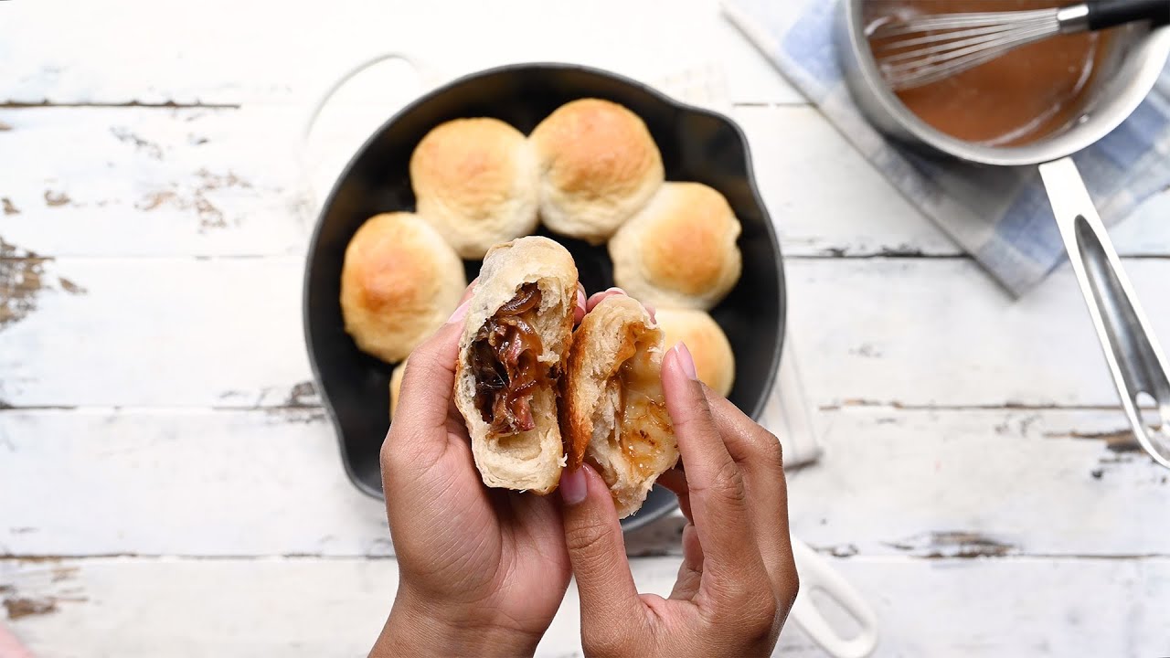 Today we will be showing you how to make Bacon French Onion Soup Bites using Godshall’s DELICIOUS Angus Steak Bacon! 😋
