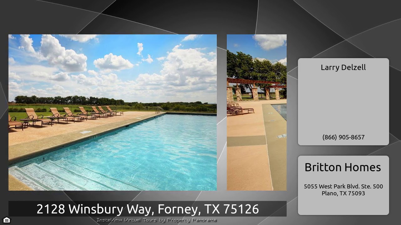 The Virtual Tour for the property at 2128 Winsbury Way, Forney, TX 75126 listed for $249,900: Other homes for sale by Larry Delzell of Britton Homes: PERRY HOMES NEW CONSTRUCTION! A welcoming three bedroom house features a Library with French doors set at the entry. Open family room with the option of a fireplace. Spacious kitchen with an island that has built-in seating space that flows into the dining area. Large master bedroom with three windows. Master bath features two vanities, a deep garden tub, large corner glass-enclosed shower and a walk-in closet. Two-car garage. This home is in …