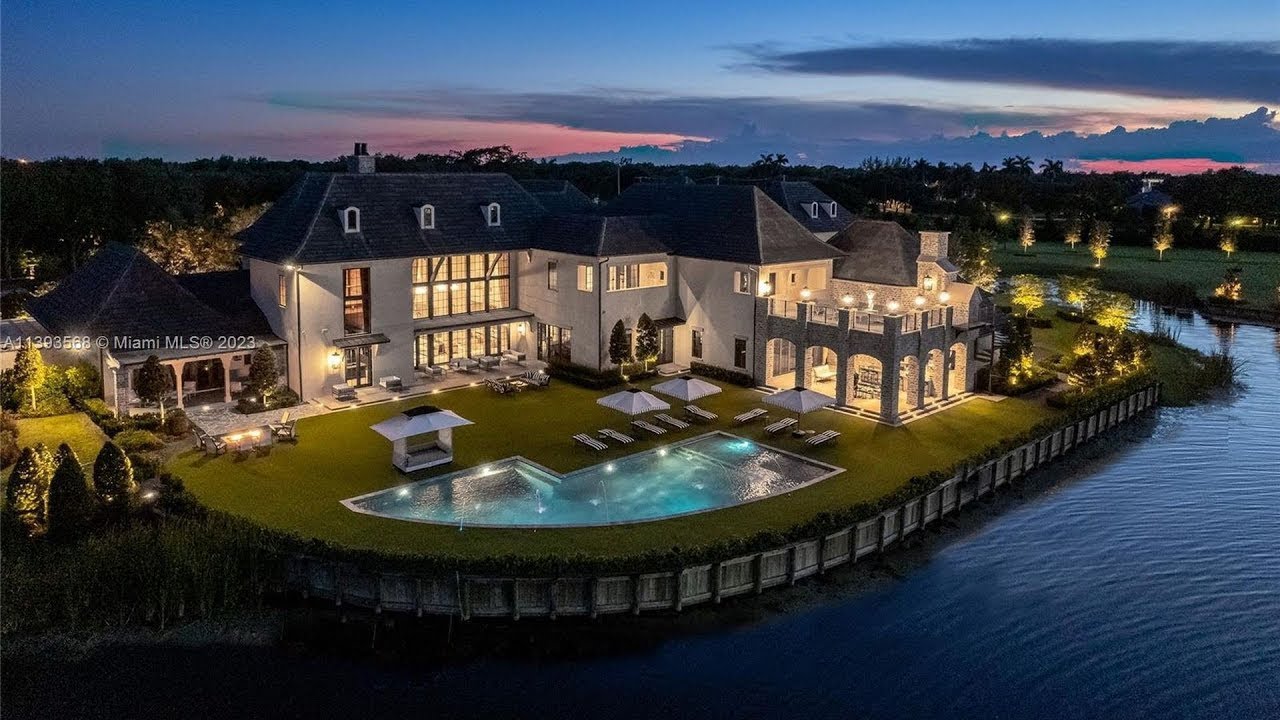 ** Description : This amazing 2-story French Country style mansion in Southwest Ranches is truly like no other in all South Florida. The fully gated resort-style 7BR/8+2BA residence offers 6.43 acres of elegant, manicured grounds & a large private lake. No expense has been spared using only the finest materials & attention to every design detail. Featuring a state-of-the-art movie theater, soaring 30FT+ceilings, expansive living, dining, family entertaining areas, 2 offices & a sumptuous principal suite with a custom 2-story closet & spa inspired bathroom. The outdoor areas of the home were designed to entertain w/infinity pool, covered lounge area, summer kitchen w/bar, & more.