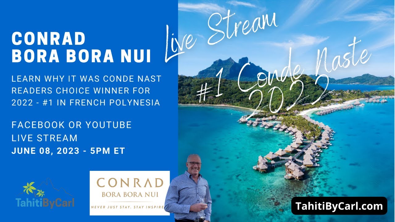 Welcome to the Conrad Bora Bora Nui, where paradise becomes a reality. Join Carl and Jennifer from the Conrad Bora Bora on this week’s Tahitian Moment Live to explore the breathtaking beauty and unparalleled luxury of this world-renowned resort in French Polynesia. Located on a private island in the Bora Bora lagoon, this South Pacific retreat will have you pampered as you are lost in the South Pacific.