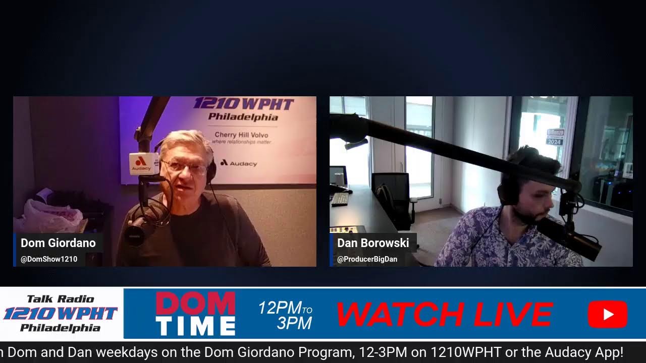 Join Dom Giordano and his producer Dan Borowski every weekday from Noon – 1PM ET as they broadcast live on YouTube, Facebook, and Twitter. To catch the rest of the show, head to 1210WPHT.com or the Audacy app!
