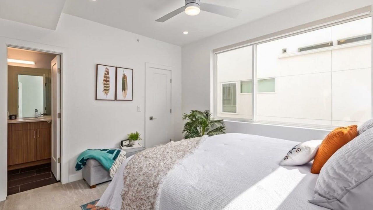 Stunning End Unit with Captivating Two-Story Glass and Brick Facade. Abundant Warmth and Natural Light – Offering 2 Beds, 3 Baths, and a 2-Car Garage. Move-in Ready: A Haven of Light-Filled Spaces. Expansive Windows Create an Airy and Elegant Ambience with 10′ Ceilings.