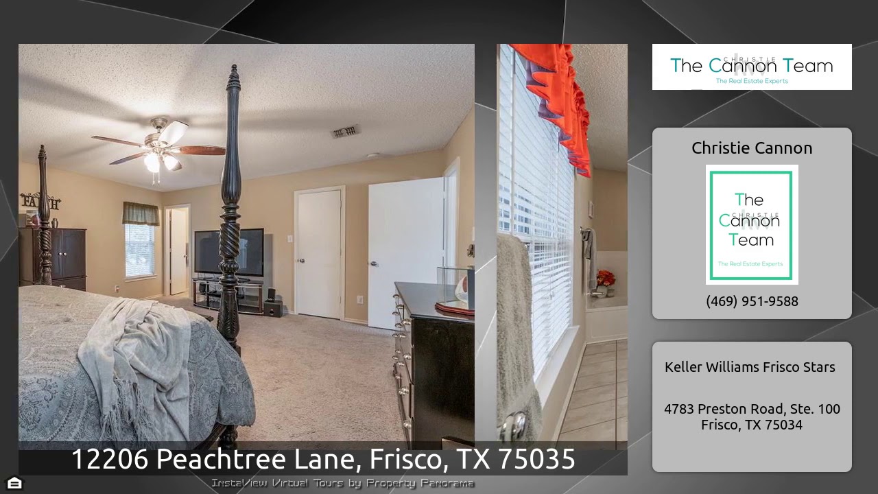 The Virtual Tour for the property at 12206 Peachtree Lane, Frisco, TX 75035 listed for $309,000: Other homes for sale by Christie Cannon of Keller Williams Frisco Stars: Prestigious FRISCO ISD! Neighborhood boasts community pool, hike & bike trails! Location is easy access to shopping, dining and major thoroughfares! Open floorplan in this light bright home with updated kitchen featuring white cabinets and gas cooktop! Luxurious Granite Countertops! Breakast room w french doors to oversized backyard! Natural light floods kitchen! Spacious Owner's retreat! Dual sinks and vanity knee space. …
