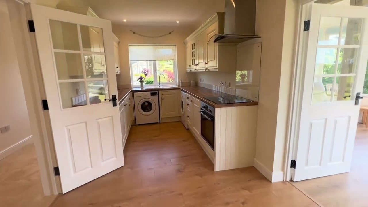 In brief this striking home offers a large Entrance Hall with access to the Open Plan space with a comprehensively fitted, luxury kitchen with large central island/breakfast bar, integrated appliances to include dishwasher, fridge, freezer and washing machine. (The electric range cooker is available by separate negotiation). To fit in with the country style kitchen there are solid oak worktops, and inset ceramic sink. There are French doors leading off from the Family area to the rear garden and window enjoying the views. A separate dual aspect Living Room again offers access to the garden, feature fireplace with wood burning stove for a more, cosy vibe.