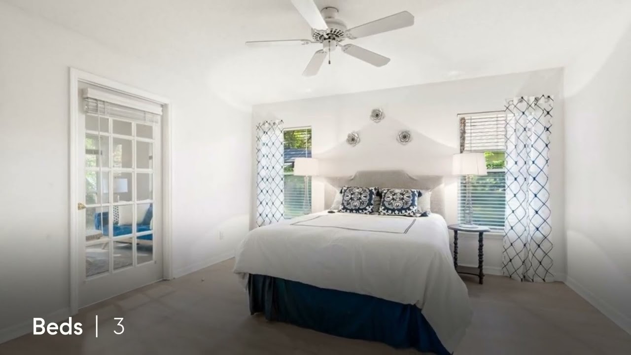 Charming split floorplan residence embraced by mature oak trees in a serene, well-established community. Recently upgraded with stylish vinyl plank flooring and a new A/C system. Captivating architectural elements encompass lofty vaulted ceilings, a delightful bay window, and spacious living and dining spaces ideal for hosting guests. Abundant windows and elegant French doors flood the interiors with gentle sunlight and offer scenic vistas of the tranquil park-like surroundings. The generous Florida room provides a serene sanctuary for reading or savoring a cup of coffee to start the day.