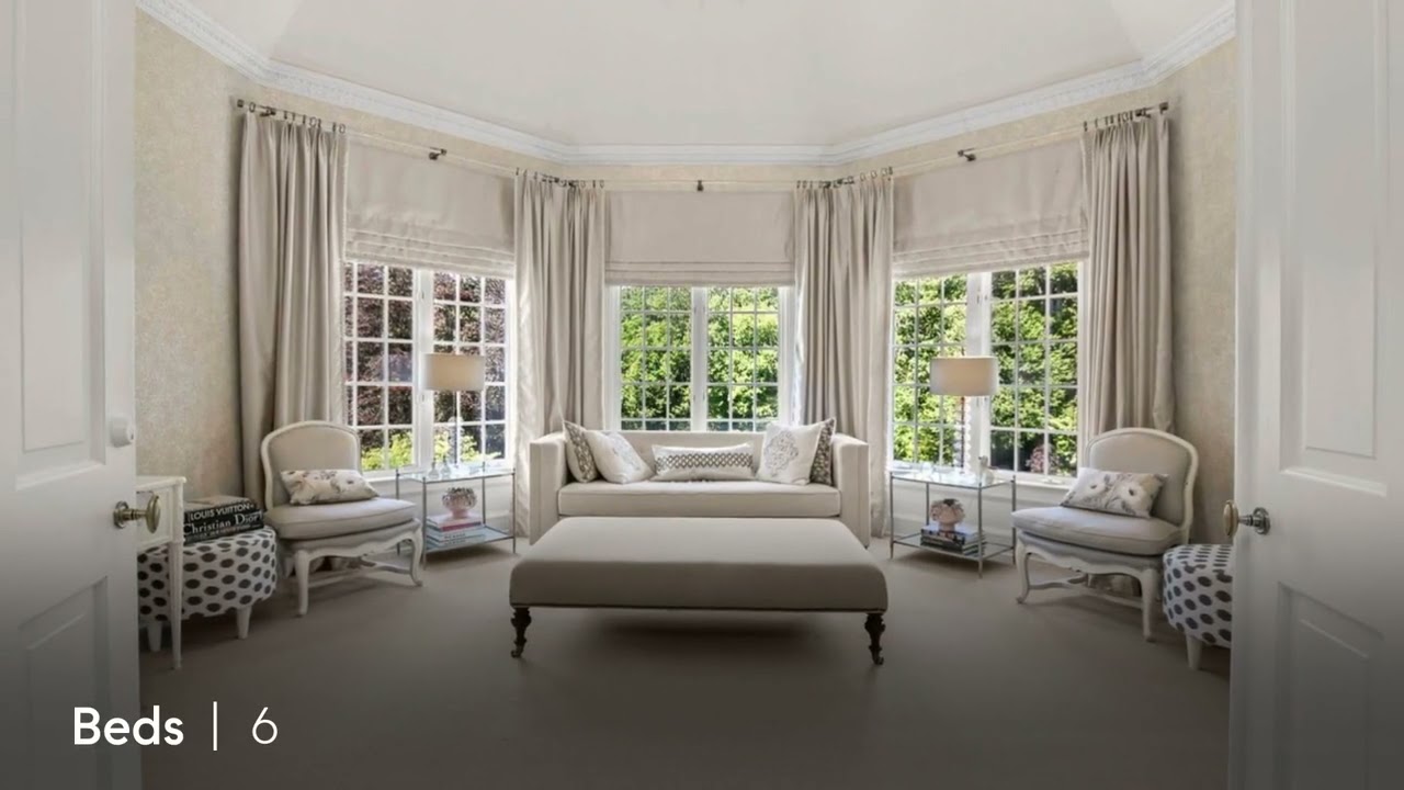 Stately brick Georgian home with soaring ceilings sits graciously atop 4.5 magical acres of rolling lawn, rose gardens, terraces, pool, outdoor kitchen, and a beautiful formal pergola for dining. Front to back foyer leads to beautifully proportioned living and dining rooms, and classically beautiful mahogany library. Gourmet island kitchen with large dining area, and adjacent family room with fireplace, form the heart of this home. All rooms on the rear boast French doors marrying the indoors to its exquisite setting. Dreamy primary suite with large sitting room, & bedroom with tray ceiling and fireplace offers two baths and two dressing rooms. 3 additional en suite bedrooms, plus a large family office, complete the second floor. Spectacular lower level with media, wine, gym. Exceptional