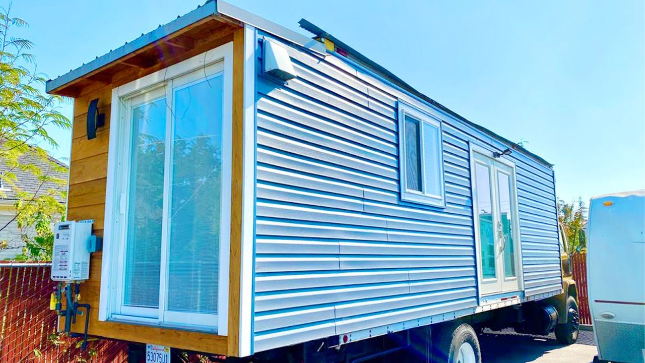 The house boasts an extra large kitchen, lots of unique touches, and many windows for plenty of natural light. It is just under 8’ wide, and spans 29’—approximately 230 sq. ft.