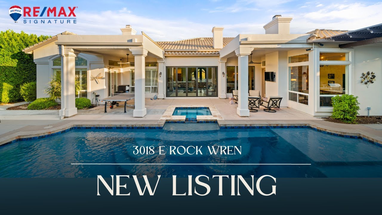Step outside to see a true oasis masterpiece. Upgraded salt-water pool and added spa set the tone outdoors with the fire feature and luscious greenery framing the backyard view. Professional misters added to covered patios and pergola to allow for year-round use along with a brand new $14k retractable awning being installed in July which covers the middle section of the patio to ensure complete shade if desired. Indoor and outdoor surround sound allow you to set the stage to pump it up or destress and relax. To the left, the pergola covers a built-in kitchen with fridge, EVO grill, full size BBQ, custom lazy susan at bar top, on-demand hot water, upgraded fan, misters and lighting. Beyond that is the sports court with a basketball hoop. Out to the right, is the outdoor fireplace where you can relax with a glass of wine and enjoy the cool night breezes. Quietly hidden away behind a gate is the upgraded outdoor electrical and pool equipment which allows you to heat or cool the pool. Owned solar keeps utilities low so you can enjoy luxury living to its fullest. Additional features include IT closet with A/C for server and security equipment, laundry with utility sink and cabinetry, water softener, built-in cabinets in garage. Wet bar in the living room features R/O for clean ice and drinking water. Enjoy all the amenities of the neighborhood including 3 recreation areas with pool, playground, tennis courts, spa, volleyball, picnic areas and more! Located less than 1/4 mile from the Mountain Park Ranch hiking trailhead.
